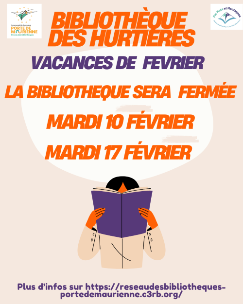 Fermeture de la bibliothèque des Hurtières mardis10 et 17 février